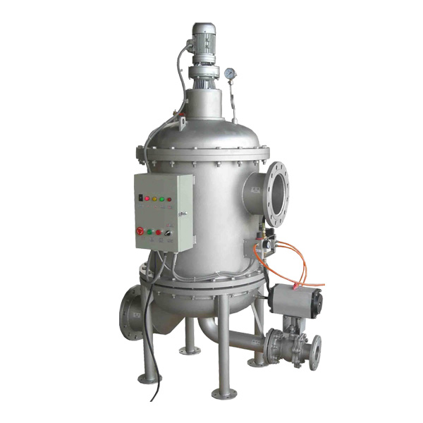 反沖洗過(guò)濾器,是一種利用濾網(wǎng)直接攔截水中的雜質(zhì),去除水體懸浮物、顆粒物,降低濁度,凈化水質(zhì),減少系統(tǒng)污垢、菌藻、銹蝕等產(chǎn)生,以凈化水質(zhì)及保護(hù)系統(tǒng)其他設(shè)備正常工作的精密設(shè)備。水由進(jìn)水口進(jìn)入自清洗過(guò)濾器機(jī)體,由于智能化(PLC、PAC)設(shè)計(jì),系統(tǒng)可自動(dòng)識(shí)別雜質(zhì)沉積程度,給排污閥信號(hào)自動(dòng)排污。