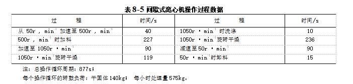 間歇卸料式離心機使機器加速至適于進料的轉(zhuǎn)速所需的時間,加入物料所需時間,加速到脫水所需轉(zhuǎn)速,并保持該轉(zhuǎn)速所需的時間,洗滌所需時間,旋轉(zhuǎn)干燥時間.