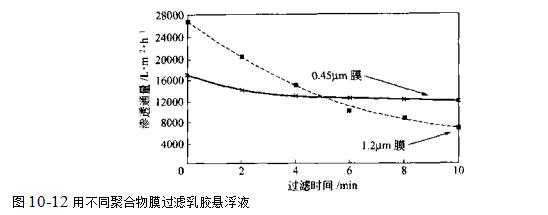 在一些應用實例中,使用小孔徑的膜進行過濾時,其在長時間內(nèi)的穩(wěn)態(tài)滲透通量比用粗大孔徑的膜進行過濾時的更高.