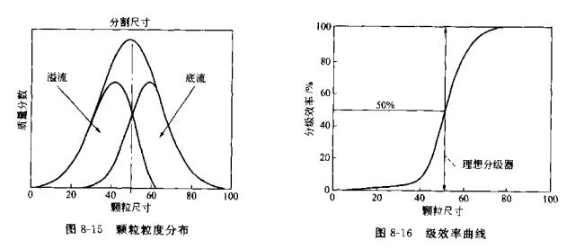 旋流器的分離效率,其含義為在分離過程中,若某一粒度的顆粒進(jìn)入底流和溢流的概率各為50%,則該顆粒的粒度就是二50.