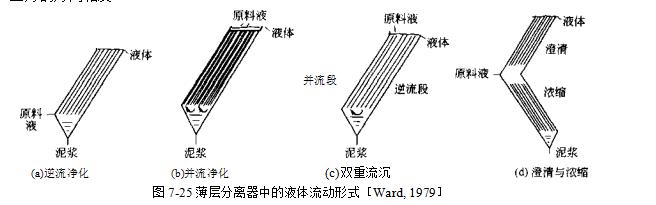 低密度的泥漿(如金屬氫氧化物)的沉降過程,最好在并流結(jié)構(gòu)裝置中進(jìn)行,以便逆流運(yùn)行能在靠近的板空間內(nèi)有更高的表面裝載能力.