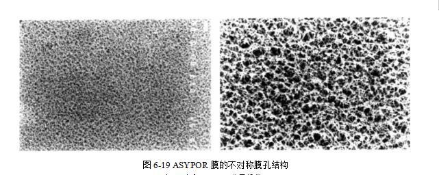 非均勻型聚合物過濾介質(zhì)和其他過濾介質(zhì)相比其一側(cè)表面開孔更大,可以得到不 同于上面所述膜孔結(jié)構(gòu)的另一種類型,例如ASYPOR過濾器.