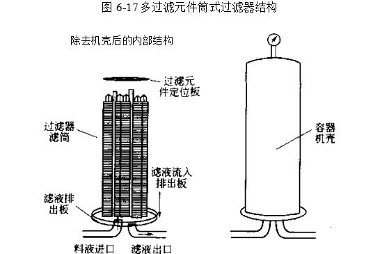 前面已經(jīng)述及在單一的過濾容器內(nèi)使用多個(gè)平行布置的濾芯完成過濾操作的情況,從這方面考慮筒式過濾器的操作就像濾芯過濾器.