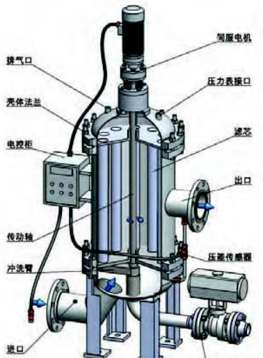 自潔式過濾器為多功能系統(tǒng)部件,具有壓差自動報警、氣水分離以及過濾功能。過濾器自潔能力強,不用經(jīng)常清洗過濾網(wǎng)。對水系統(tǒng)中的氧化鐵皮、老垢、污泥和空氣等雜質進行有效地排除,以保證水質的清潔