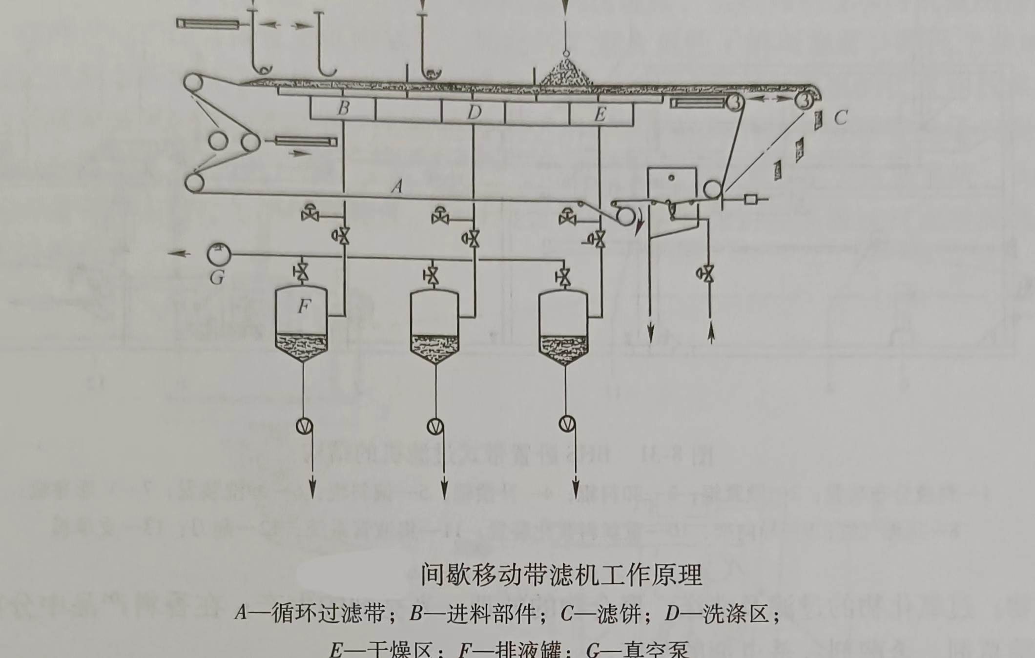 間歇移動(dòng)帶濾機(jī)工作原理過(guò)濾工藝是借助一個(gè)沒(méi)有終端的且由濾布構(gòu)成的循環(huán)過(guò)濾帶來(lái)完成過(guò)濾的